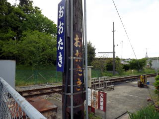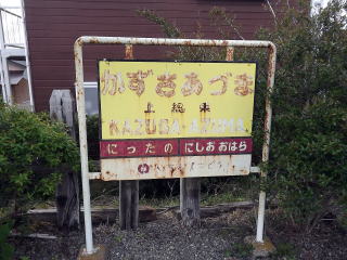 木製、塗装なしの駅名標。文字は彫り込んであります。この駅だけで見られたオリジナルのタイプです。(H25.5撮影)