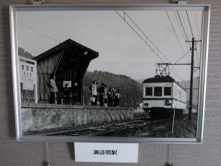 休止前の諏訪間駅。平成26年に起点の永平寺口(当時の東古市駅)の旧駅舎が交流館に改修され、そこに展示されていた写真です。 |