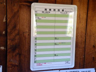 石北本線 旧白滝駅 壁かけタイプのもので、優等列車のないもの。赤い文字が小さく見えますが、これは普通列車でも通過駅のあるものの表示です。(H20.11撮影) |