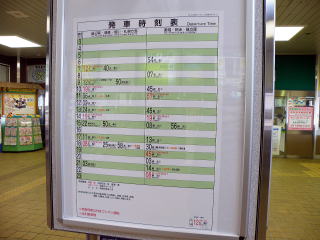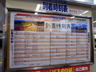 | 宗谷本線 名寄駅 この駅も折り返し列車が多いため、到着時刻表があります。分岐線がなくなり、本数も少ないので旭川駅のもののような巨大なものではありません。(H20.10撮影) |