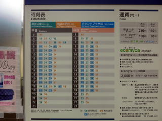 富山港線 犬島新町駅 富山ライトレールより移管された富山港線の時刻表。他の各種掲示と同じ表示板に記されています。この手のものはダイヤ改正毎に全面更新するのでしょうか、いつも疑問に思います。(R2.7撮影) |