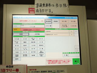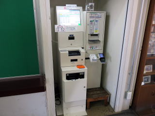 | 福武線 たけふ新駅 タッチパネル式の新型券売機。線内の通常きっぷのほか、回数券、フリーきっぷ、相互乗り入れするえちぜん鉄道三国芦原線の切符が購入できます。タッチパネルのある機器からは領収書が出力され、きっぷは右の機械から出ます。またクレジットカードやスマホのバーコード決済にも対応していますが、これは後付けなのでないでしょうか。(R6.5撮影) |