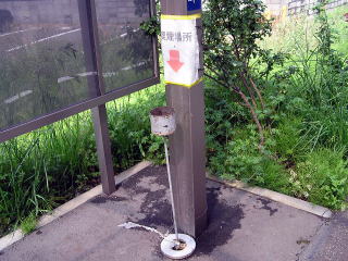 岳南線 ジヤトコ前駅 ホームの喫煙所。ホーム端に見えますが、待合のために拡幅された箇所の隅で、待合からは離れていません。(H20.4撮影) |