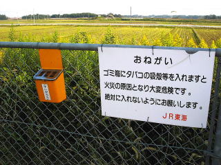 関西本線 井田川駅 やはりフェンスにかけた小さな灰皿。これはJR仕様ではなく、おそらく一般的なもの。(H16.11撮影) |