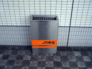 | 東海道新幹線 新富士駅 駅舎入口の喫煙コーナー。あまり他駅では見かけなかったステンレスボディの灰皿がありました。(H17.5撮影) |