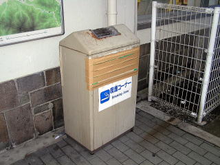 | 山陽本線 通津駅 灰皿部分に屋根のあるタイプ。これ、どういう用途でしょうか、風対策か雨対策か…。飛散対策ではないでしょうし…。(H19.9撮影) |