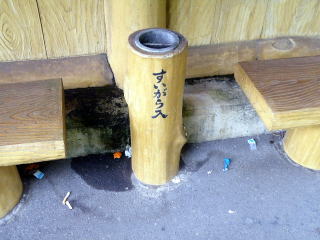 | 宿毛線 東宿毛駅 駅舎のない駅で、ホーム待合室内の喫煙コーナー。市中によくあるJTの吸いがら入れです。(H21.5撮影) |