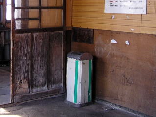 | 立山線 岩峅寺駅 ホーム待合室内の喫煙所。両面ホームの、閉鎖可能な待合室ですが、ど真ん中に陣取っています。(H16.2撮影) |