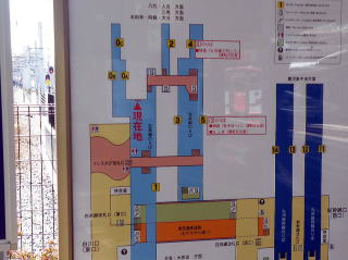 新幹線開業後、高架化前の仮設期間ではありますが、かなり複雑な構内でした。地面に乗り場の誘導ラインがそこかしこに引かれていました。 |