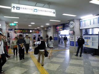 | 駅舎内。実は駅舎の奥行きがそれほどなく、コンコースもそう広くありません。この奥が改札で、右手が新幹線改札への通路した。 |