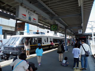 改札口。鹿児島本線と豊肥本線のほか、宇土から分岐する三角線の列車も乗入れるため、列車案内板も大型でした。 |