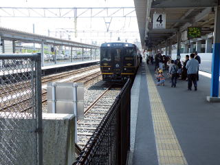 | 4番は行止り線で、三角線流入列車が主に使用しました。現在も4番は切欠ホームで三角線ホームです。 |