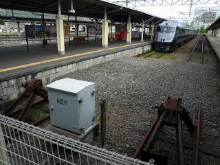 | 現ホーム高架化されましたが、地平時代のホームは3面4線でした。通常の特急列車のほか寝台列車も発着したためホームは長いです。 |
