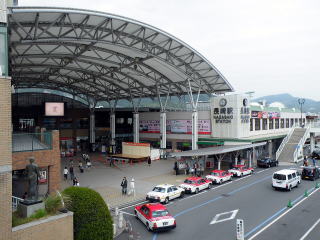 駅舎にないコンコース機能は、駅舎に隣接している「かもめ広場」が担います。手前側はホテルも含めたJRグループの商業施設「アミュプラザ長崎」です。 |