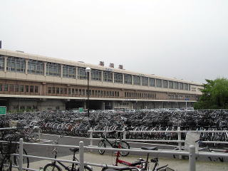 | こちらは新幹線高架の側で、裏口当たる東口。現在も躯体は変わりませんが、駅舎の入口回りと、この広いパーキングがあった駅前は再開発で大きく変わっています。(H17.6撮影) | 東口側には広大な駐輪場もありました。自分の自転車が見つかるのか不思議なくらいの量です。確認していませんが、おそらく現状多層建のものに変わっていると思われます。 | ||
