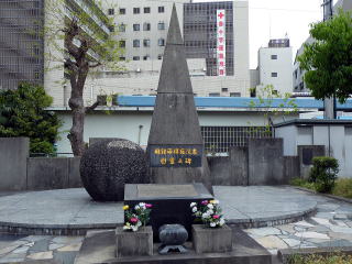 旧国鉄駅として原爆爆心地に最も近く、駅前に国鉄職員の原爆犠牲者の慰霊碑がありました。国鉄労組による建立で、現駅周辺にあったかは分かりませんでした。 |