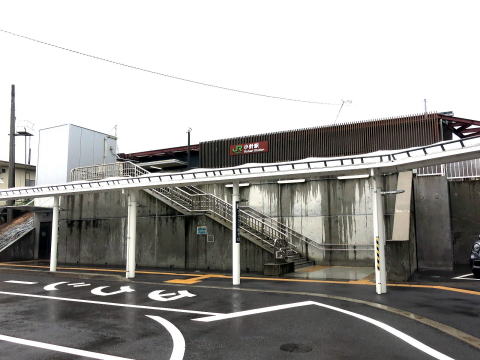 | 平屋建てのコンクリート造駅舎。駅舎自体はオーソドックスですが、駅前との段差がかなりあり、平成31年に大規模なバリアフリー工事が行なわれ、同時に駅舎も前面にタテルーバーが設置されるなど改修されています。(R7.9撮影) |