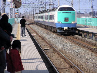 | 特急列車が通過していきました。 | 跨線橋から。下り方には飯豊連峰が見えます。 | ||||||||||||||||