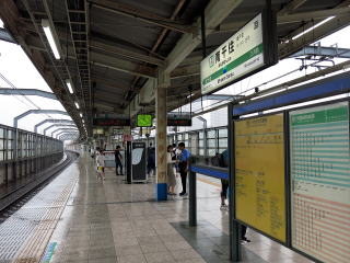 | ホームは1面2線。磁器タイル張りのホームですが、雨の日滑りそうでちょっと気を遣いました。 | ホームは大きくカーブしている部分があります。 | |||||||||||||||||||