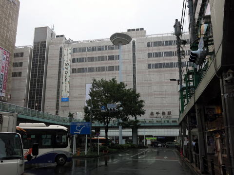| 駅ビル併設の、駅舎構造としては橋上駅舎です。こちらは西口です。駅前には路線バスも入るロータリーがあり、駅周囲には地方都市中心地区規模の商圏があります。(R1.9撮影) |