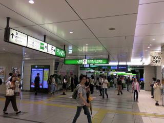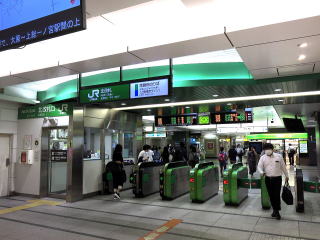 | 東口。JR共用ですがこちらは東京メトロや東武鉄道、つくばエクスプレスの乗り場が近く、どの社章もありません。 | 半ドーム型の高い天井のあるJR改札前コンコース。この左側につくばエクスプレス改札があります。 | |||||||||||||||||||||