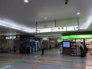 | 西口駅舎の改札口。改札機が8台並びます。 | 改札内コンコース。コンビニ売店が入っています。 | |||||||||||||||||||||