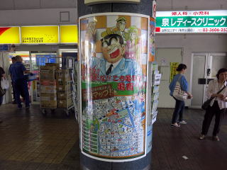 | 「こち亀」のフィーチャーですが、駅前の銅像以外、意外に多くはありません。これは付近のこち亀銅像マップです。 | 駅舎内。高架へ上がる階段とエスカレーターがあります。この奥に何故か床屋さんがあります。 | ||||||||||||||||