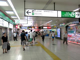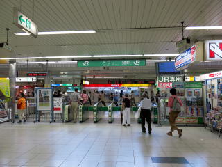 | 駅舎内。自由通路の左右に商業施設やみどりの窓口があります。改札・券売機は右手にあります。 | 中央改札口。駅規模に比して改札機が少ないように見えますが、これは入口線用です。出口はこの右手にあります。 | |||||||||||||||||||