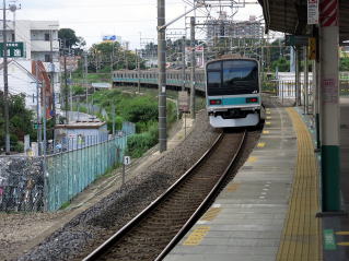 | ホームは1面2線。左手に見える低い築堤は通過となる急行線の路盤です。 | この駅ホーム自体が築堤上にあり、大きくカーブしています。 | ||||||||||||||||