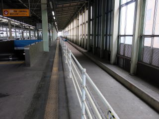 | 相対式ホームの中間に上下の通過線があります。最速達列車が1日1本だけ通過します。 | 下りホームは形状としては両面ホームで、路盤用地があります。これは羽越新幹線の線増用です。 | |||||||||||||||||||
