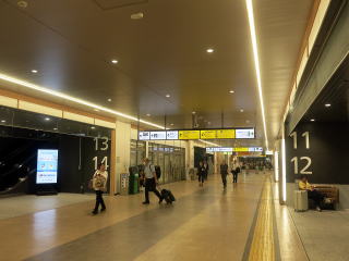 | 新幹線西改札。やはり奥に在来西改札が並びます。どちらかと言えば西側が裏通路の雰囲気です。 | 改札内コンコース。コンコースと言うより「通路」の雰囲気が強いです。コンビニ売店、待合室、トイレなどがあります。 | |||||||||||||||||||