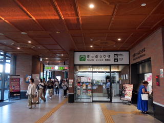 | 裏手に当たる西口。自家用車用のロータリーがあります。入口はレンガ調です。 | 駅舎内。みどりの窓口設置駅です。改札は改札機ではなくICカードリーダーです。 | |||||||||||||||||||||