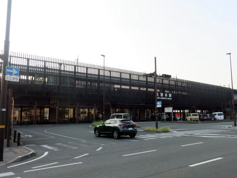 | 高架駅舎です。平成27年に周辺の連続立体交差化工事が一部完了し、高架化されました。和風のシックな駅舎ですが、外装はタテルーバーで、角度によっては到着する列車が見えます。(R7.8撮影) |