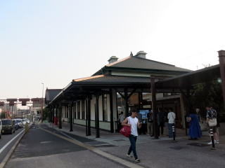 | ホームは中央の上屋がかかる箇所は木板張りです。 | 保存されている旧駅舎ですが、構えだけ残して併設する市電の駅舎に流用されています。 | |||||||||||||||||||||