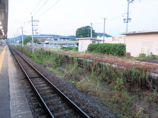 | ホームは特にカーブしていませんが、上り方は中央に段差があります。 | 東口側に廃ホームがあります。かなり朽ちて見えますが、かつて駅舎に接していた1番ホームです。 | ||||||||||||||||