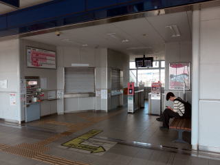| 在来線と新幹線は並行せず交差するため在来駅舎の右手に新幹線駅舎があります。駅舎同士は軒下で接しています。またこの形態のため乗換改札はありません。 | 在来駅舎内。窓口はあります。朝早めだったためか閉まっていました。 | |||||||||||||||||||
