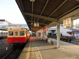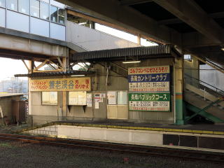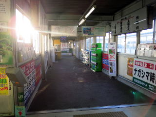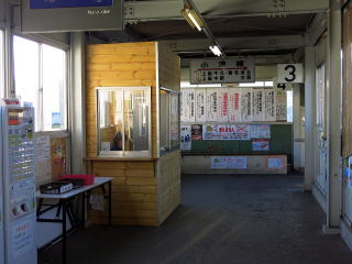 | ホームには待合室などはありません。ベンチがいくつか並びます。 | ホーム端に駅事務室があります。ここにかつての出札窓口があったようです。これはJRホームから見ています。 | |||||||||||||||||||