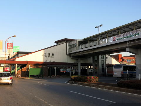 | JR共用の橋上駅舎。街割りとしては裏手に当たる南口です。駅前に4車線道路を公道を取り込んだようなロータリーがあり、それを越える歩道橋が駅舎中央2階に通じています。(H26.1撮影) |