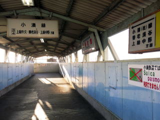 | 小湊鐵道線乗り場入口。JR同一構内ですが、JR改札とは別の入口があります。 | 小湊鐵道専用改札、と言っても改札は行なわれていません。券売機があります。 | |||||||||||||||||||