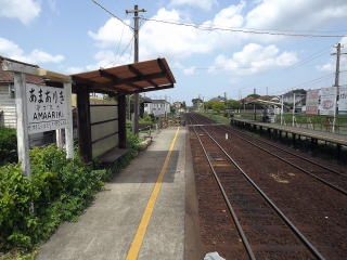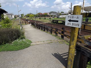 | ホームは2面2線です。両ホームに小さな上屋だけの待合所があります。 | 両ホームを結ぶのは構内踏切です。駅舎反対側の下りホームへは駅舎前の階段を通らずにアクセス出来ます。 | ||||||||||||||||
