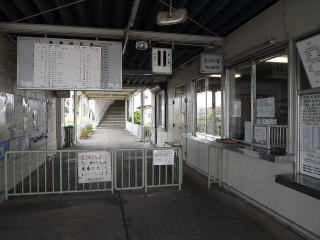 | 他駅に比べ明らかに一世代新しいコンクリート造平屋建ての駅舎。ただしJR線の国鉄期にもよく見られた「国鉄くさい」駅舎で、現在としてはレトロな駅舎です。(H25.5撮影) |