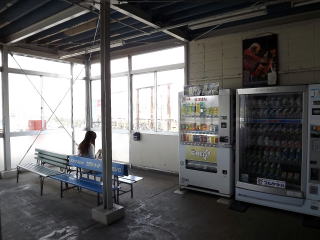 | 駅舎の待合コーナー。実際の国鉄のコンクリート駅舎に比べ、この部分は若干安普請な感じがあります。 | 駅舎とホーム跨線橋とを結ぶ通路。駅舎側を見ています。途中トイレがあり、また通路は一旦外へ出ます。 | ||||||||||||||||