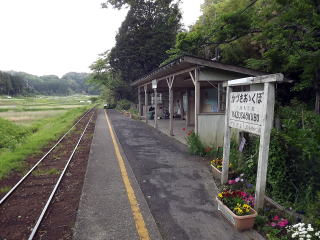 | 山間の駅で、小湊鐵道線内では随一の秘境駅。秘境駅とは言え雰囲気のみで、至近に郵便局や神社などがある集落があります。駅周囲は鬱蒼とはしていますが、大きな桜があることもあり、ちょっと絵になる森とも言え、カメラマン人気のある駅です。 |