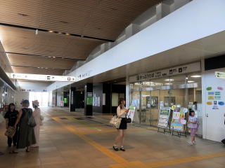 | 1階はホールとなっており、イベントなどに利用されています。 | 2階は吹き抜けで通路箇所が多く、駅舎前面のガラス面に沿って1階のホールを見下ろせる廊下があります。 | ||||||||||||||||||||||||