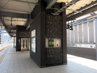 | ホームは1面2線です。ホームはタイル張りです。 | 駅の各所に蔦を模した装飾があります。駅入口脇の壁も同じ装飾がありました。 | |||||||||||||||||||||