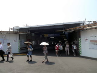 | 駅入口。大人しい出で立ちのベージュの駅舎ですが、入口はレンガ造で、御影石の駅名板があります。 | 駅舎内、自由通路兼コンコース。改札などは左手で、右手には商業施設が入っています。 | |||||||||||||||||||||