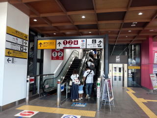 | 在来線乗り場、北口への通路。若干の段差があり、エスカレーターエレベーターが設置されています。 |