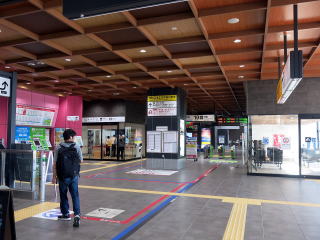 新幹線改札口。左側新幹線用、右側新幹線接続の在来特急用と分かれています。動線は中で再合流しますが、券売機が異なります。 |