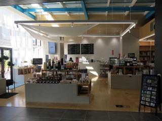 駅舎内には大きな物産販売所があります。駅の売店というより洒落た温泉宿の土産物屋の風情です。 |