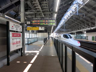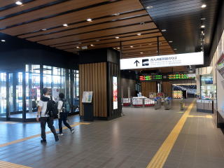 | 駅舎内コンコース。新幹線単独駅であることもあってそう広くはありません。売店なども駅前の物産館が担っています。 |